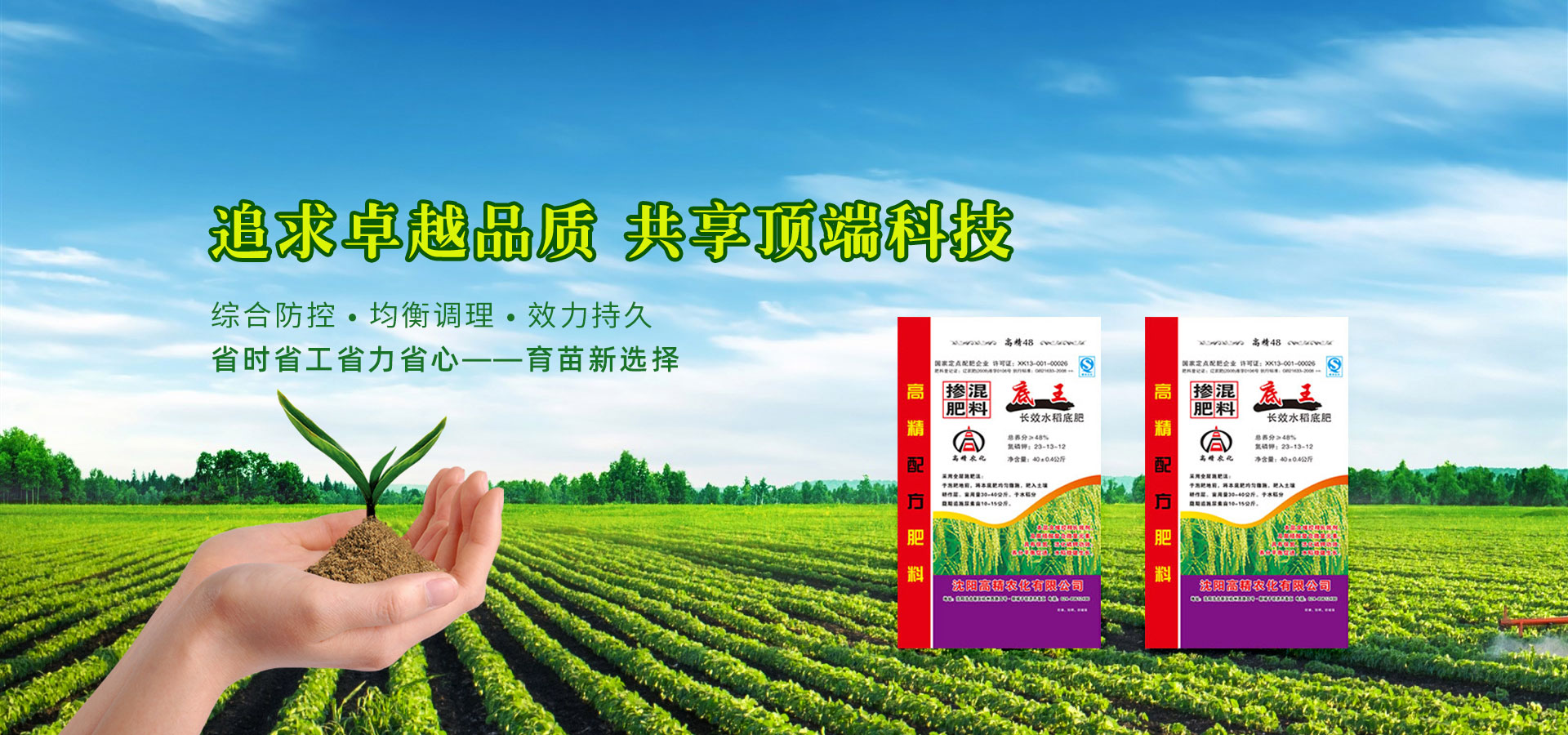 沈陽高精農(nóng)化有限公司坐落于風(fēng)景如畫、生態(tài)環(huán)境一流的沈北新區(qū)。公司創(chuàng)立于2005年,前身為沈陽新城化工有限公司。現(xiàn)已發(fā)展成為初具規(guī)模的現(xiàn)代化肥料和農(nóng)藥生產(chǎn)企業(yè),擁有國內(nèi)一流的肥料檢測設(shè)備和十萬噸級全自動(dòng)肥料生產(chǎn)設(shè)備。2006年被評為國家定點(diǎn)肥料生產(chǎn)企業(yè)。